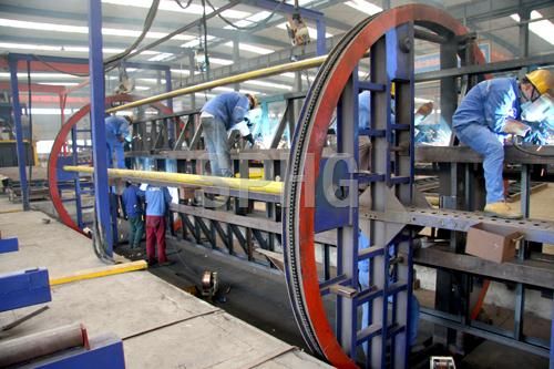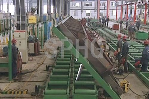 采用自動(dòng)定位方式,所有工位均采用自動(dòng)焊接。整條生產(chǎn)線(xiàn)采用滾輪輸送方式,在生產(chǎn)過(guò)程中,盡量避免行吊在工件上的使用,節(jié)省了行吊的使用時(shí)間,提高了工作效率。
