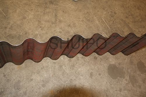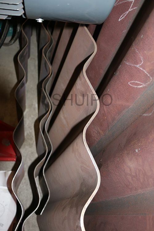波紋板成型機(jī)主要分為機(jī)架、驅(qū)動(dòng)部分、上壓輪、下壓輪、進(jìn)料導(dǎo)向機(jī)構(gòu)、以及前后工作臺(tái),波紋板自動(dòng)成型機(jī)通過(guò)同時(shí)旋轉(zhuǎn)的上、下壓輪,將平板加工成波紋狀,成型效果一致性好,效率高,波紋的高度調(diào)整有電機(jī)驅(qū)動(dòng)。
